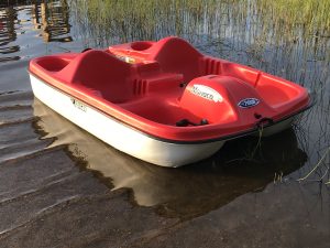 - Hiekkaranta, laituri, soutuvene