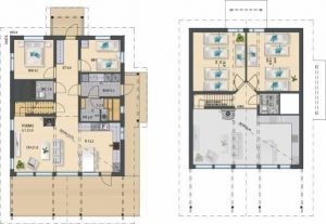 Oh + keittiö + eteinen + puulämmitteinen sauna + kodinhoitohuone, 2-kerrosta, WC molemmissa kerroksissa